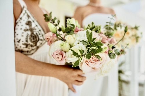 Designed to reflect the high-end shopping, luxury hotels, and secluded beaches of the neighborhood, this years Bal Harbour Village mannequin, created by Indigo Hues Designs, combines a mix of White Roses, White Orchids and Palm Fronds